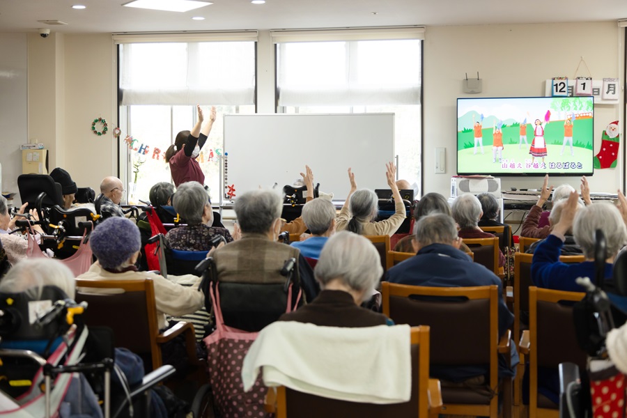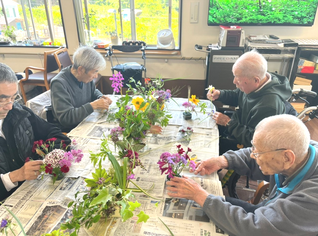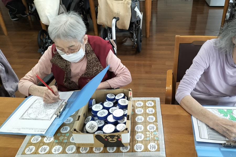 09:00~ バイタル測定、挨拶、入浴(男性は髭剃り)物理療法・機能訓練、脳トレ、塗り絵